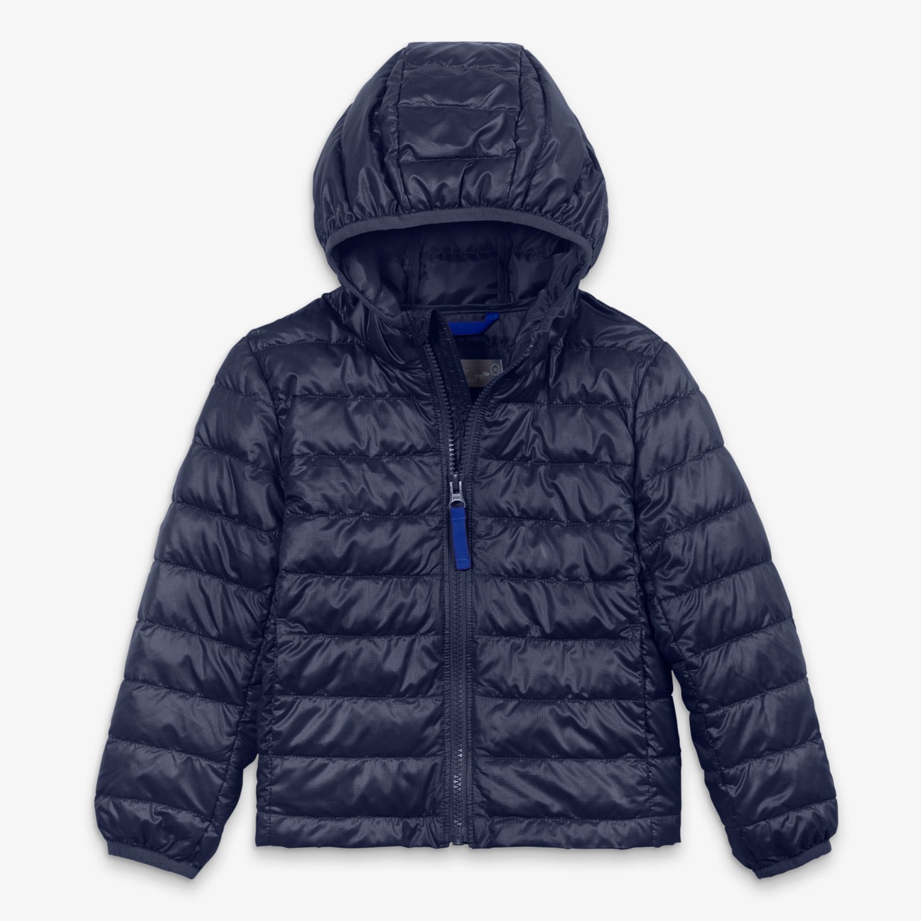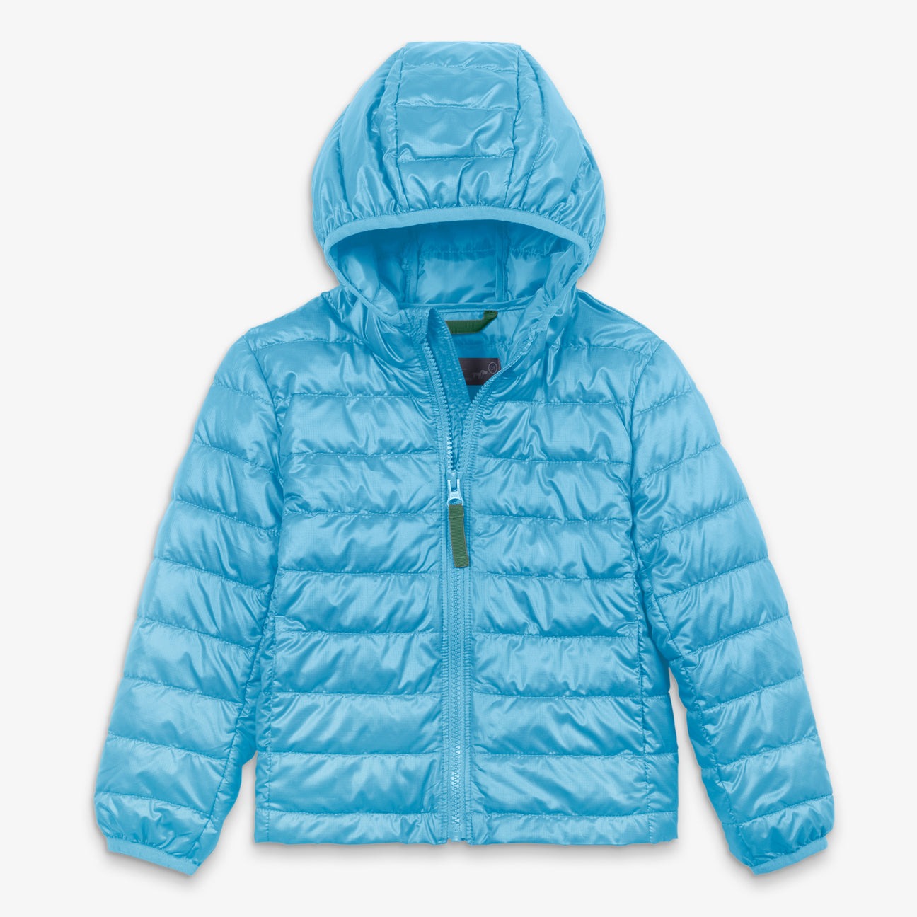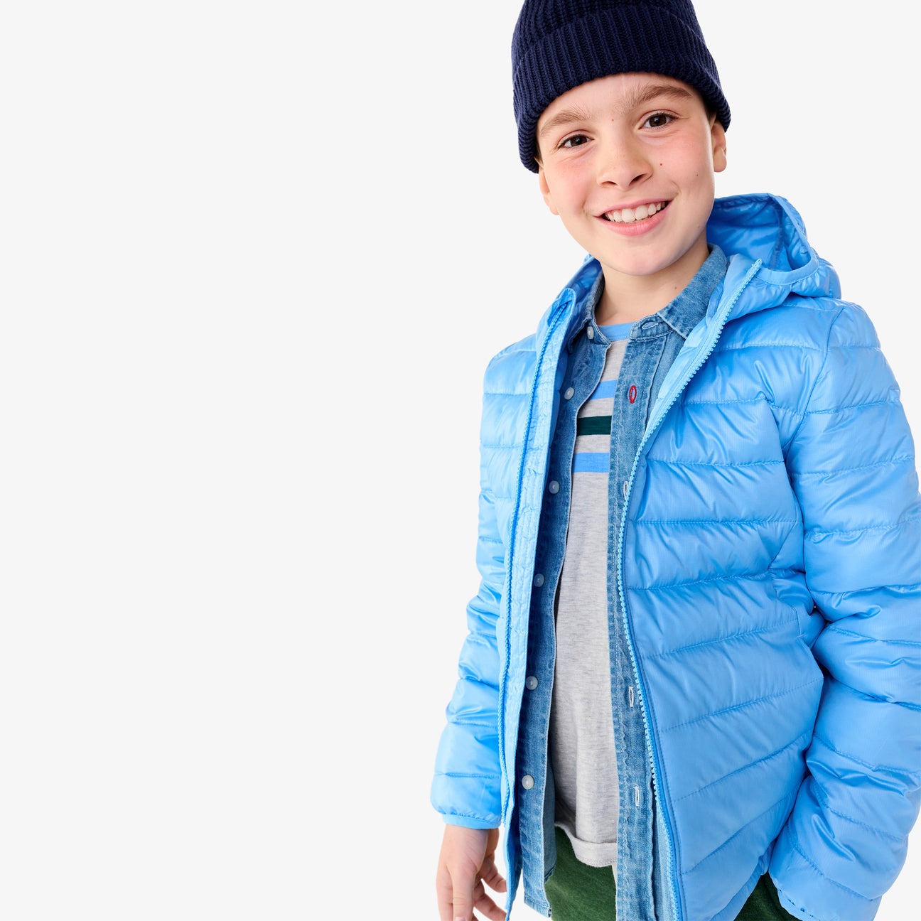 Q1: What sizes are available for the Kids Lightweight Puffer Jacket?